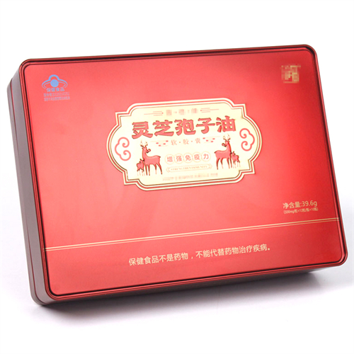 方形靈芝孢子油鐵盒_馬口鐵保健食品鐵盒包裝定制工廠